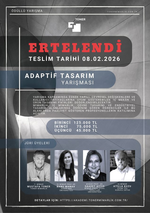 “Adaptif Mimarlık” tasarım yarışması 08.02.2026 tarihine ertelenmiştir.
